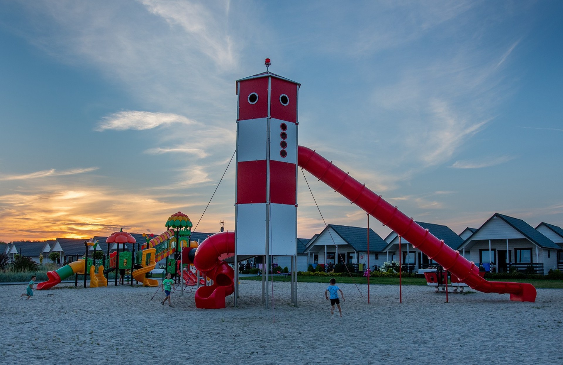 - 5 różnych konstrukcji, w tym charakterystyczna zjeżdżalnia - latarnia morska,